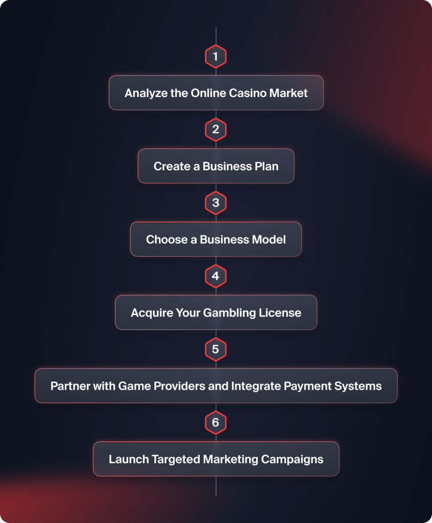 If you’re planning to create an online casino platform in 2026, here are the steps you’ll need to take: