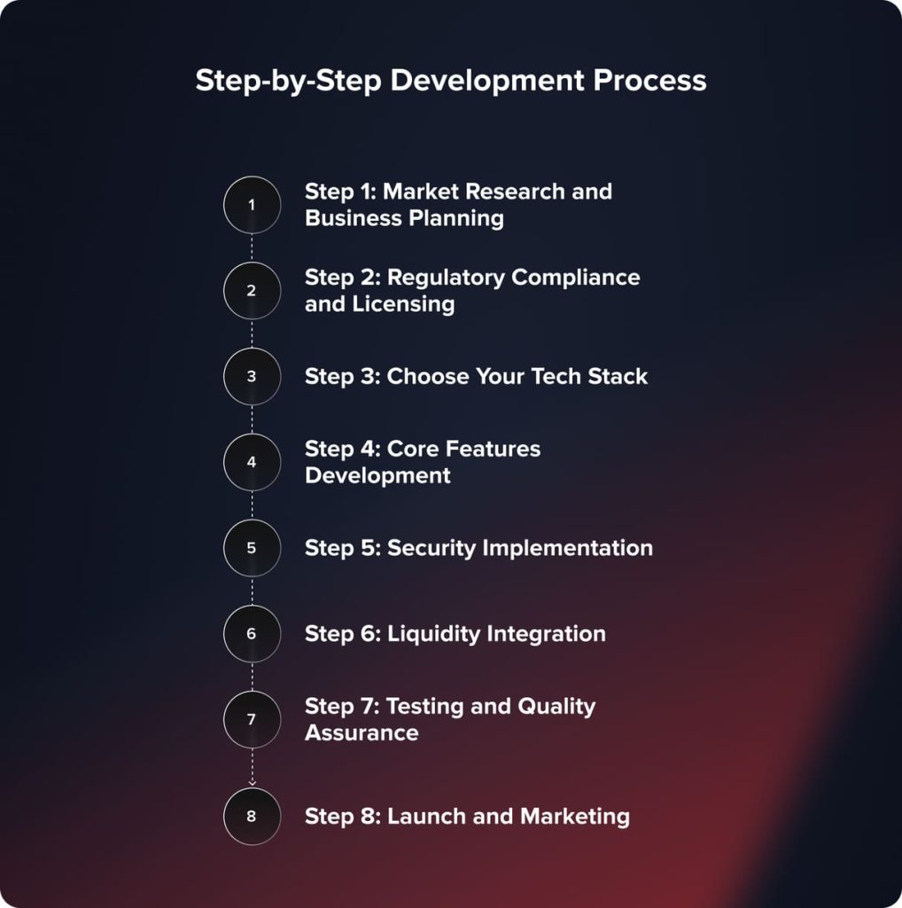 Your research into the market needs to ascertain target markets, geographic location, and competitor type before putting pen to paper with a line of code. Consider if you want to be specialized in forex, stocks, cryptos, or multi-asset trading because each has different liquidity setups and regulatory requirements. Research successful models like Robinhood's mobile-first or Interactive Brokers' professional-level functionality to identify areas of market deficiency.