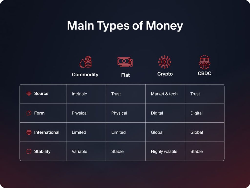 How the Main Types of Money Differ